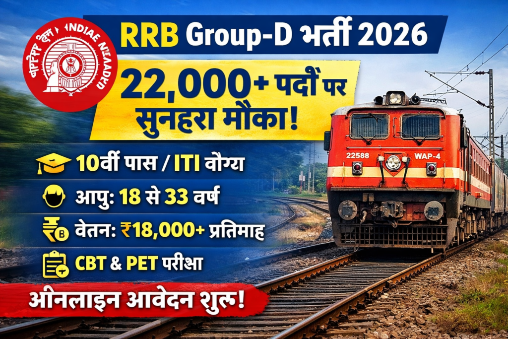 Indian Railways के Railway Recruitment Boards (RRB) ने Group-D (Level-1) पदों के लिए 2026 में भर्ती प्रक्रिया शुरू की है। यह भर्ती पुरे भारत में रेल विभाग के अलग-अलग ज़ोन/डिवीजनों में भर्तियाँ करेगी।